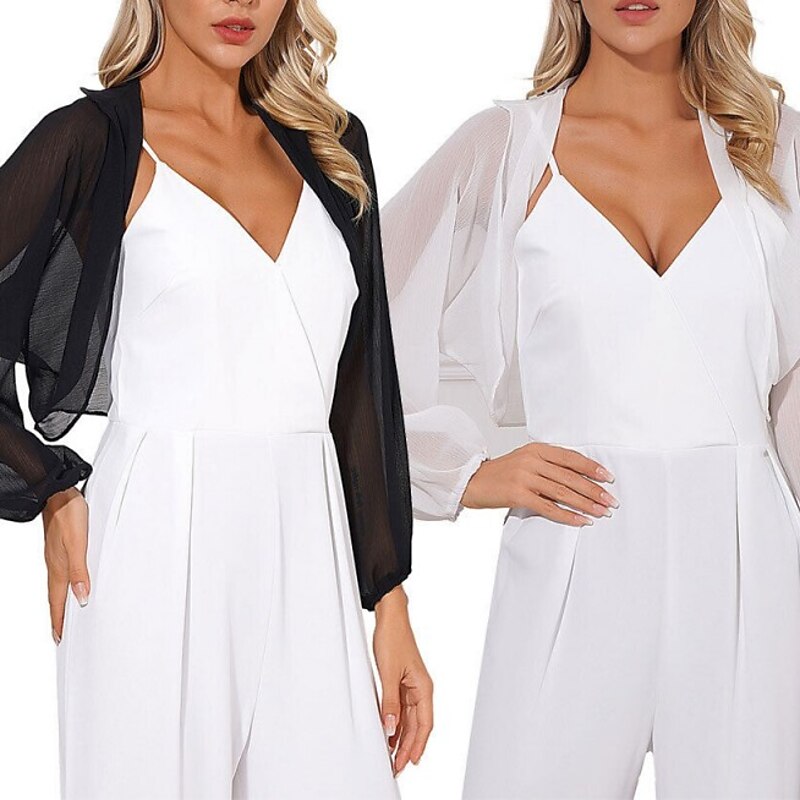 More information about Shawls Women's Wrap Bolero Elegant Pure Long Sleeve Chiffon Wedding Wraps With Pure Color For Party Evening Wear Spring & Summer