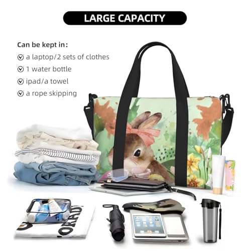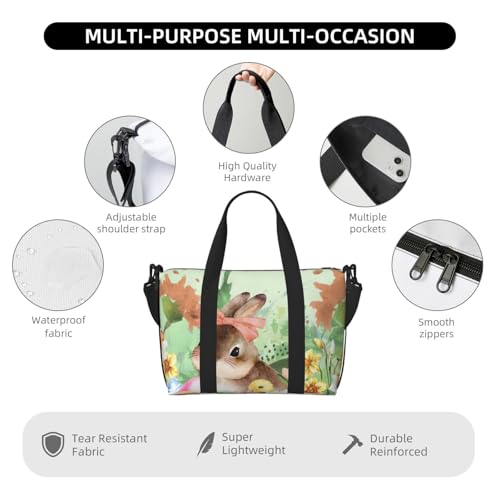 HOT ! Watercolor Bunny Flower Travel Duffel Bag Easter Eggs Carry On Tote Bag for Women Large Shoulder Weekender Overnight Bag Sports Gym Bag