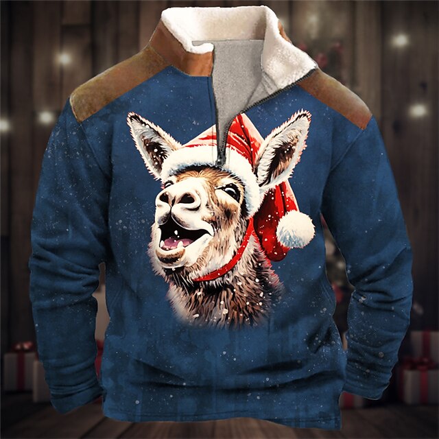 More information about Men's Graphic Donkey Merry Christmas Sweatshirts Sweatshirt Sweatshirt Zip Sweatshirt Long Sleeve Sweatshirt Quarter Zip Daily Basic Casual 3D Print Holiday Vacation Going out Print Fleece Fall