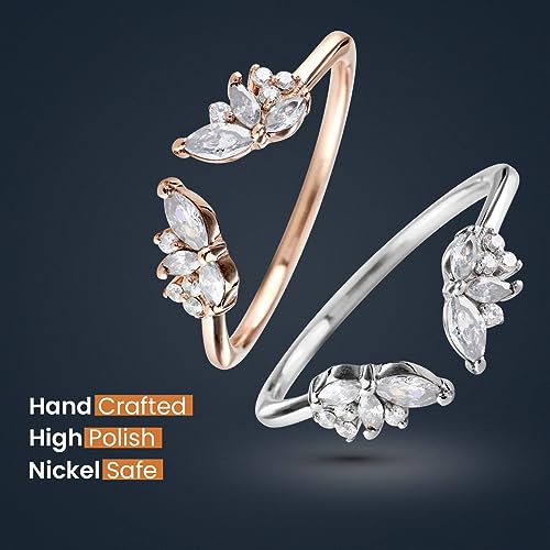 • FEATURES : Handmade Open Engagement Ring Enhancer, Detailed with Marquise and Round Shape Sparkling AAA White Cubic Zirconia Stones. Meticulously Hand Crafted in 925 Sterling Silver with White and Rose Gold Two Rhodium Plating Colors. Wear This Ring Separately or Stack It with Your any Existing Rings for Complement. This Open Curved Design Wedding Band Fits Perfectly with the Ring.