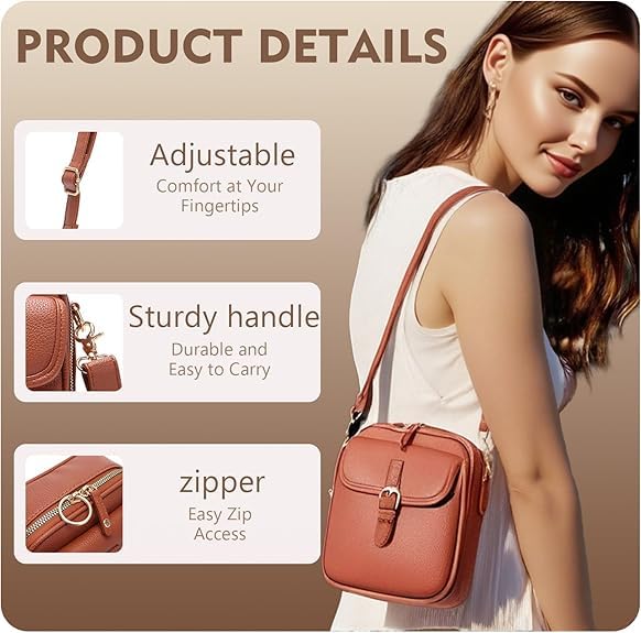 More information about Crossbody Leather Bag,Double Layer Large Capacity Messenger Bag,Faux Leather Built in Purse Anti Theft Bag, Adjustable Strap