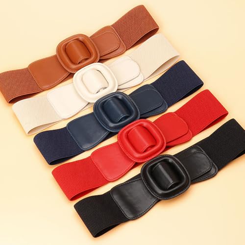 Women's Round Free-buckle Simple Waist Belts Stretch Corset Elastic Wide Boho Cinch for Dress Belt 4