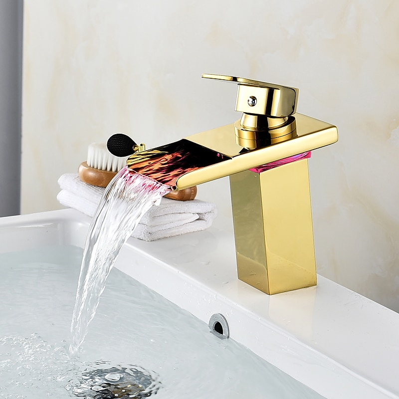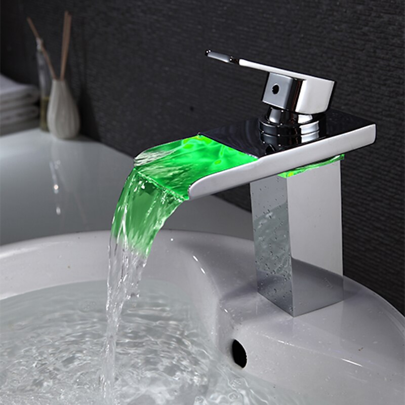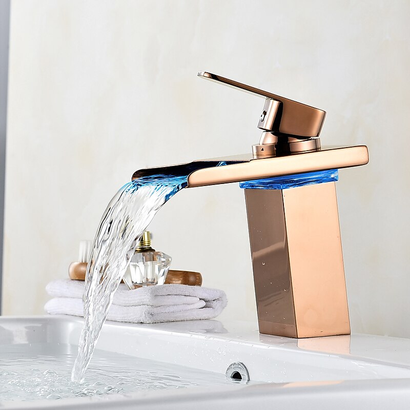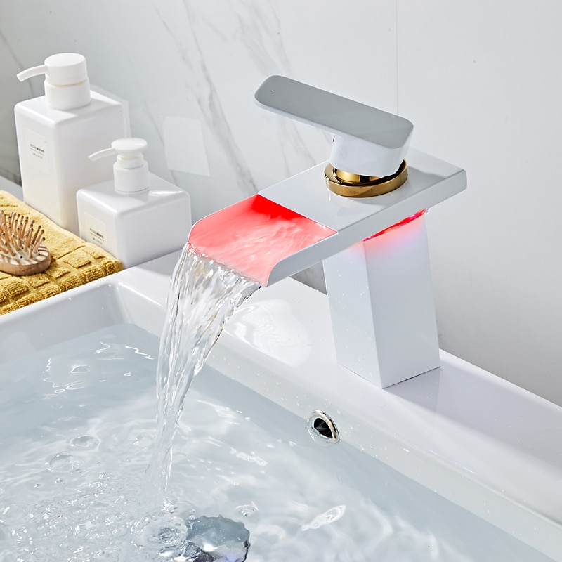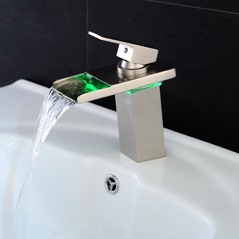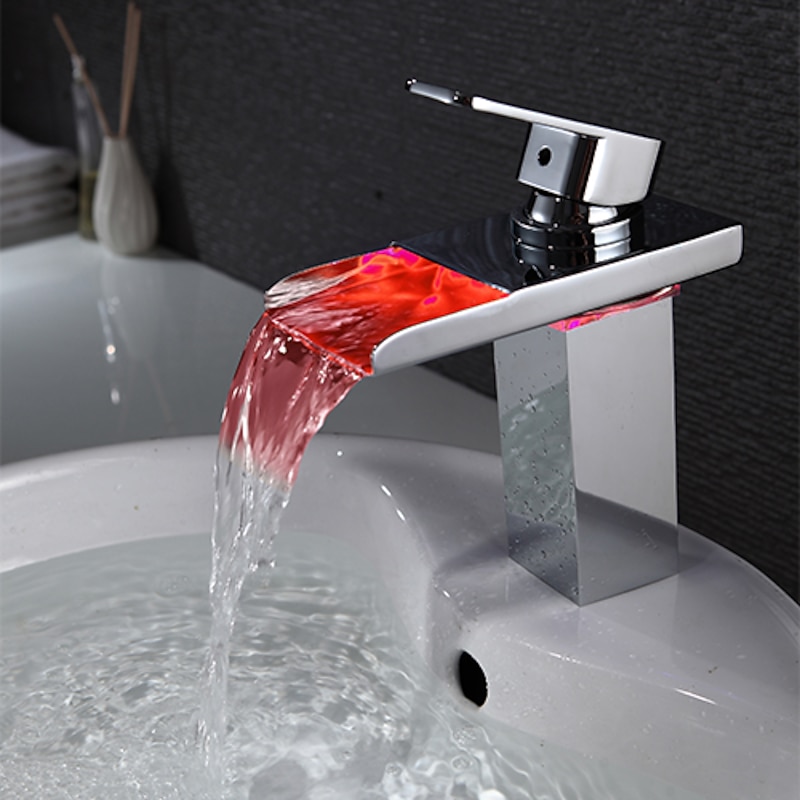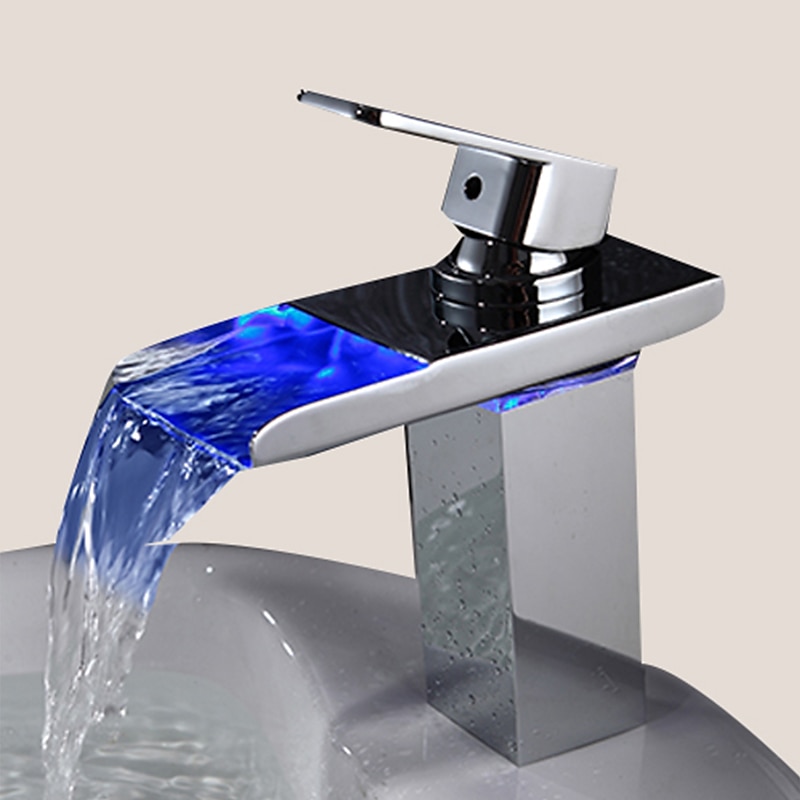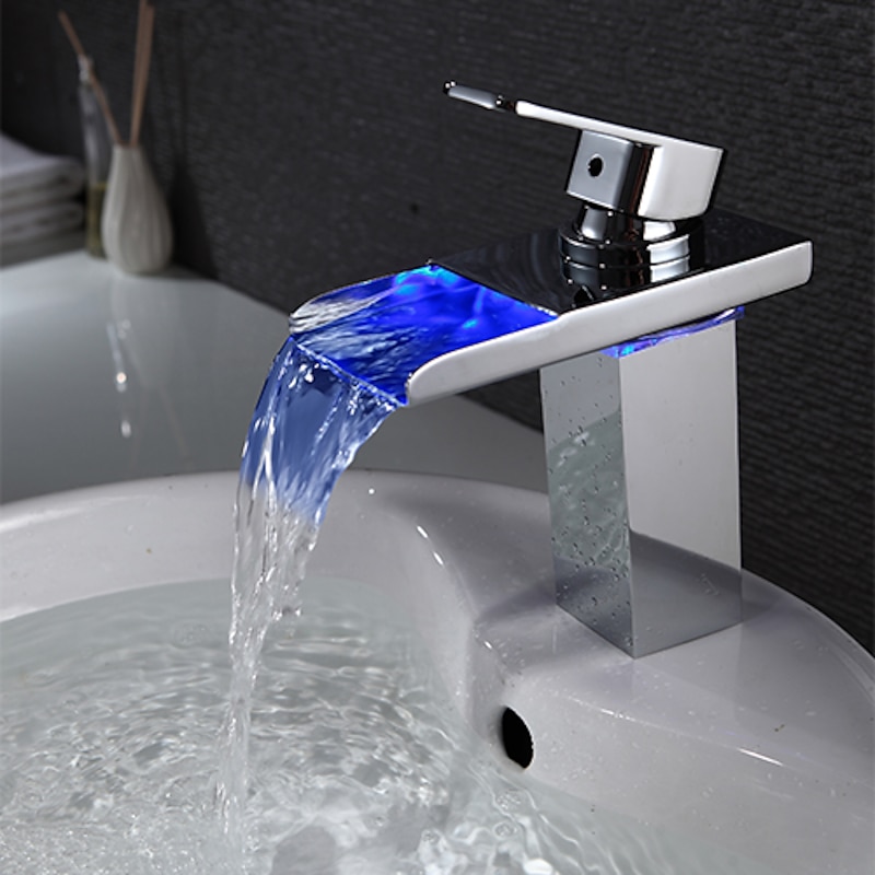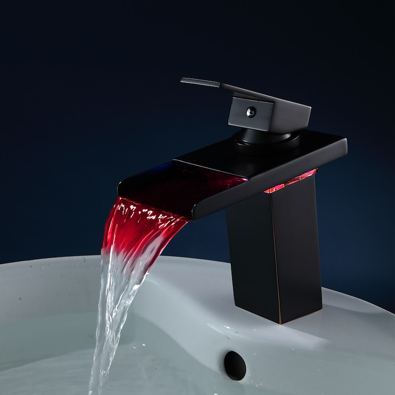 HOT ! Bathroom Sink Faucet with Supply Hose,LED Waterfall Spout Single Handle Single Hole Vessel Lavatory Faucet,Slanted Body Basin Mixer Tap