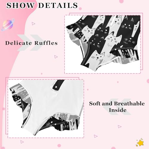 ALAZA White Black Cat Cartoon Girls One Piece Swimsuit Long Sleeve Rash Guard Swimsuits UV 50+ Swimwear Zipper 5
