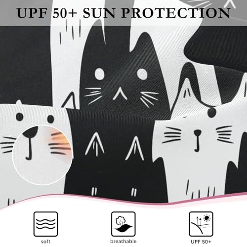 More information about ALAZA White Black Cat Cartoon Girls One Piece Swimsuit Long Sleeve Rash Guard Swimsuits UV 50+ Swimwear Zipper