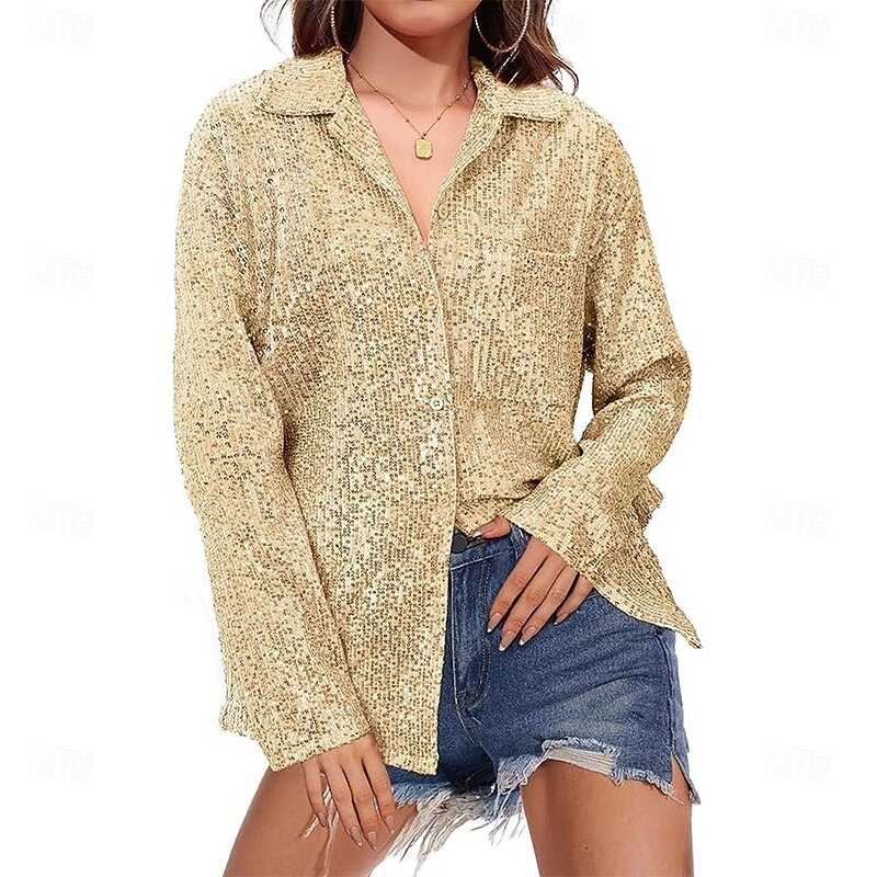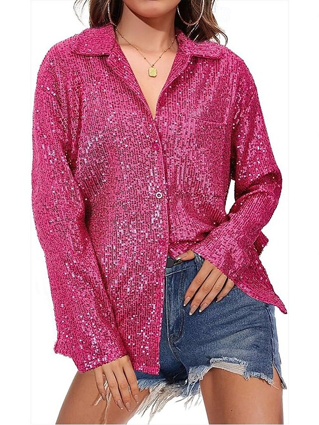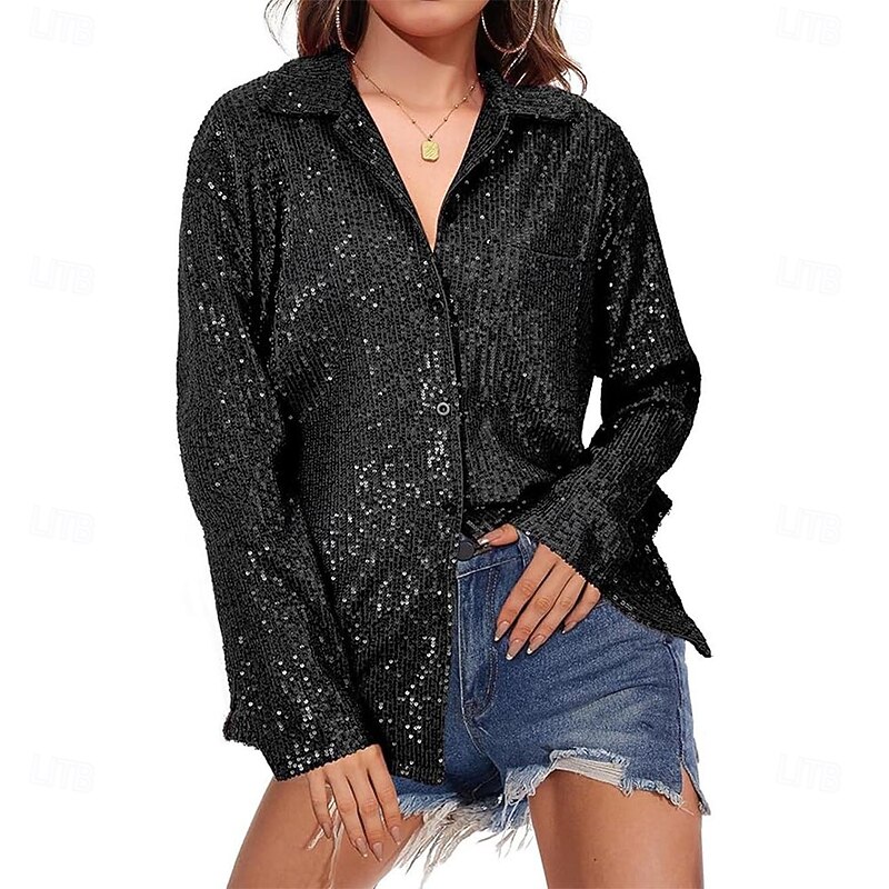 More information about Women's Sequin Sparkly Party Glitter Sparkly Daily Stylish Long Sleeve Shirt Collar Regular Tops Daily Holiday Sequins Silver Black Wine Blue Purple Spring Fall