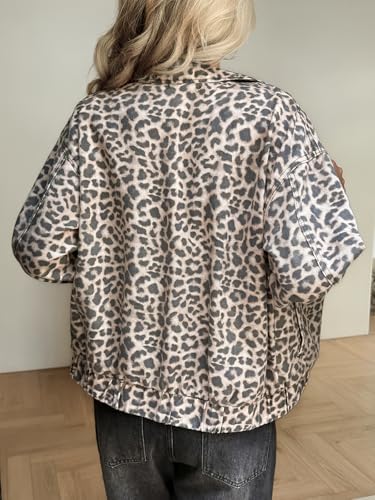 Cicy Bell Womens Leopard Zip Up Bomber Jackets Cropped Long Sleeve Denim Coats Trendy Casual Collared Vintage Outerwear 6