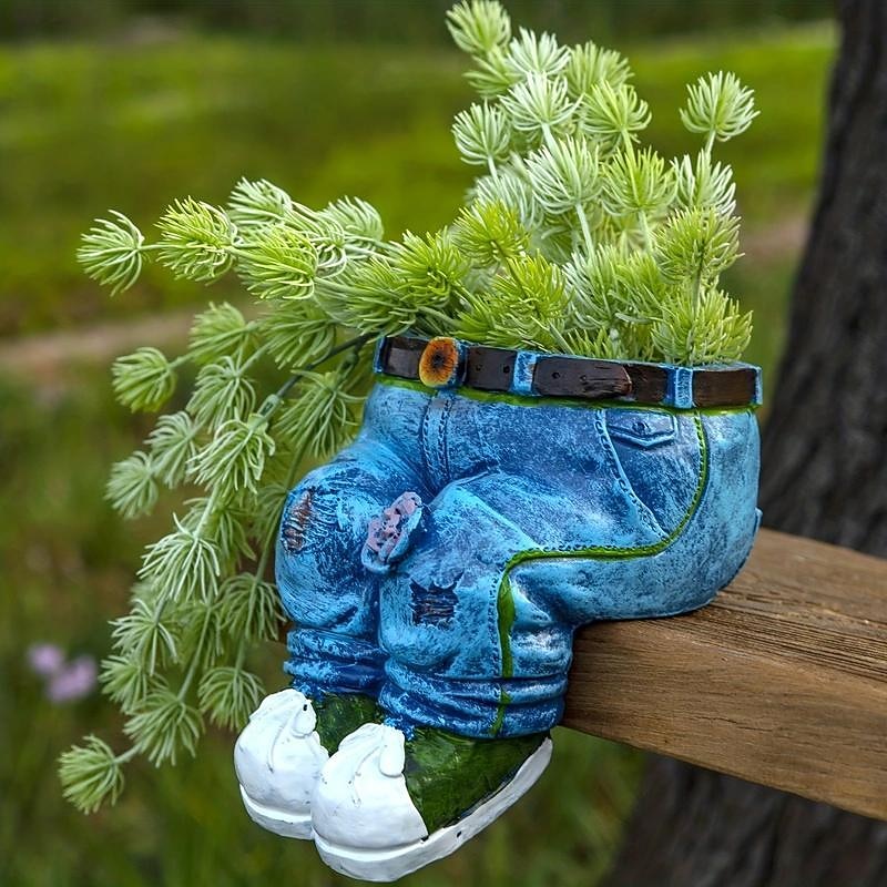 More information about Funny Indoor And Outdoor Flower Pots Resin Denim Pants Ornaments Creative Flower Pot Decoration Crafts Retro Garden Decoration