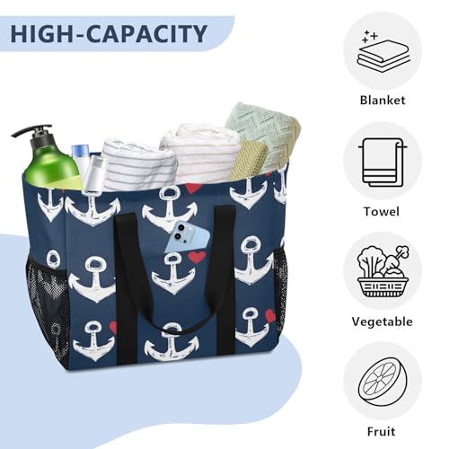 HOT ! Large Waterproof Travel Tote Bag for Women Men, Sea Anchor Loves Heart Canvas Beach Bag with Lining & Pockets - Reusable Grocery/Laundry/Kitchen/Pool/Picnic Tote (15.4x9.8x12.8in)