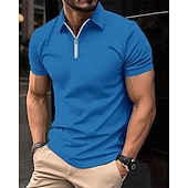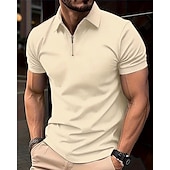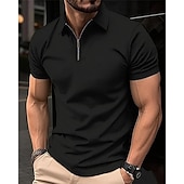 Highlights [Fabric & Fit] : Made from a breathable polyester and mesh blend, this men's polo shirt offers a micro-elastic fit that ensures comfort and ease of movement. The regular fit silhouette is designed to provide a sleek and polished look, making it ideal for both casual and semi-formal settings. [Design Highlights] : Featuring a classic turndown collar and a quarter-zip closure, this polo shirt combines timeless style with a modern twist. The waffle texture adds subtle detail, while the short sleeves ensure versatility and comfort during warmer months. [Occasions] : Suitable for daily wear, holidays, and outings, this polo shirt is a versatile addition to any wardrobe. Its plain and textured pattern makes it easy to pair with chinos or jeans for a refined yet relaxed appearance. [Size Range] : Available in a range of sizes from S to 3XL, this polo shirt is designed to cater to various body types and preferences. [Colors] : Offered in classic colors including White, Black, Blue, and Khaki, providing a variety of options to match different styles and occasions.