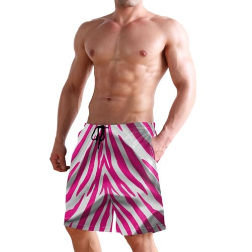 Quick Dry Pink Zebra Stripe Men's Swimming Shorts Swim Trunks with Mesh Lining Beach Wear - S 1
