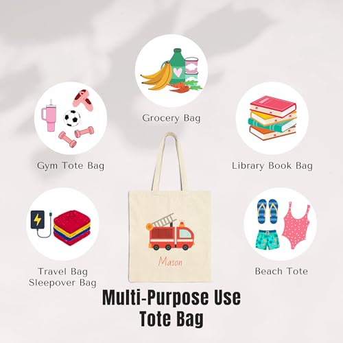 • CUTE FIRE TRUCK DESIGN – Featuring a fire engine print, this tote bag is perfect for little boys who love fire truck and emergency vehicles. A great gift for toddlers and kids who are fire fighter lover!