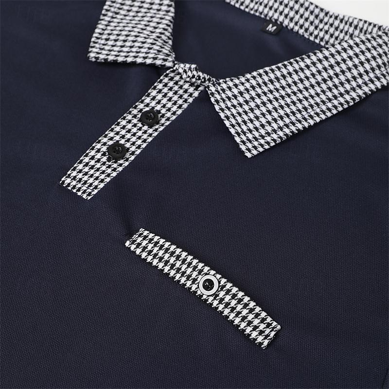Men's Polo Shirt Golf Shirt Casual Holiday Lapel Short Sleeve Fashion Basic Plain Classic Style Summer Regular Fit Black White Dark Navy Blue Polo Shirt 5