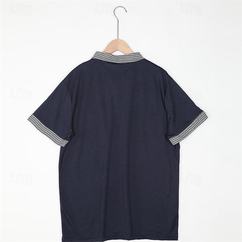 Men's Polo Shirt Golf Shirt Casual Holiday Lapel Short Sleeve Fashion Basic Plain Classic Style Summer Regular Fit Black White Dark Navy Blue Polo Shirt 7
