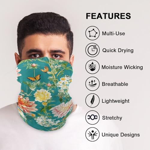 HOT ! Safari Vivid Color Flowers Teal Four season Dust and Dirt proof neck gaiter women Unique Designs Masks for face for Daily outfit Hiking Snowboarding