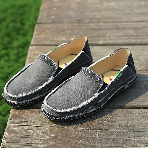 Denim Cloth Washed Loafers for Men's Vintage Slip On Round top Lightweight Casual Shoes Low Top WearResistant Elastic Band Walking Flat Slippers 6