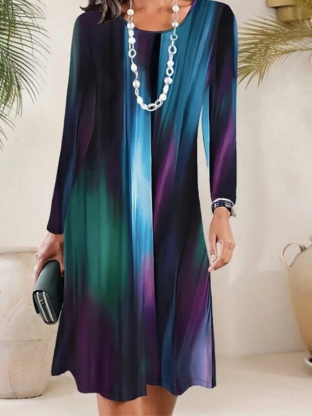More information about Women's Mini Dress T Shirt Dress Tee Dress A Line Dress Vacation Casual Daily Date Regular Fit Ombre Graphic Abstract Long Sleeve Crew Neck Pink Blue Summer Spring Fall Winter