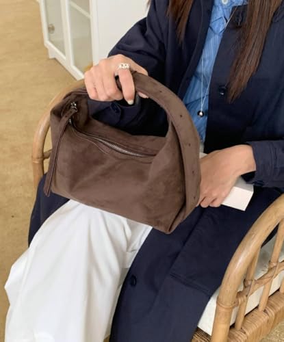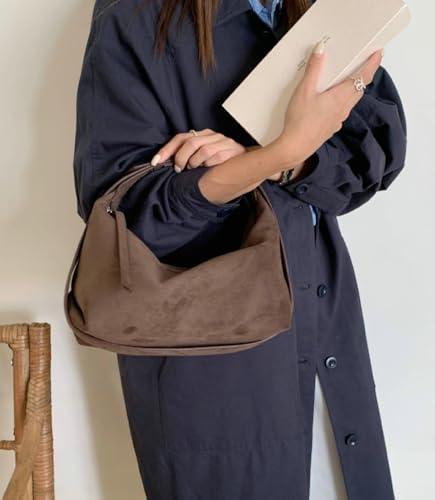More information about Suede Handbags Retro Shoulder Bag for Women Crescent Crossbody Satchels Bag Work Travel Tote Bags Winter Brown Purse