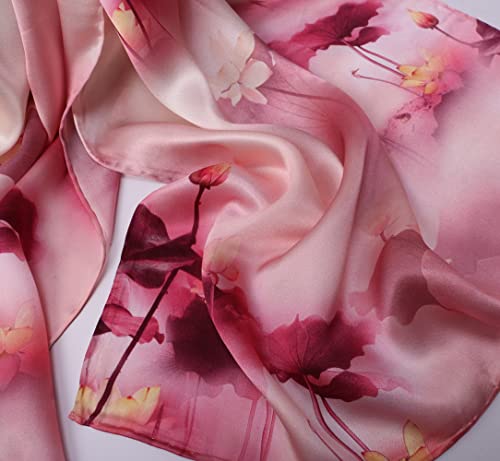 Women's Pure Mulberry Silk Mulberry Silk Scarf Floral Print Satin Long Scarf Wrap Shawl (fzlr10) 4