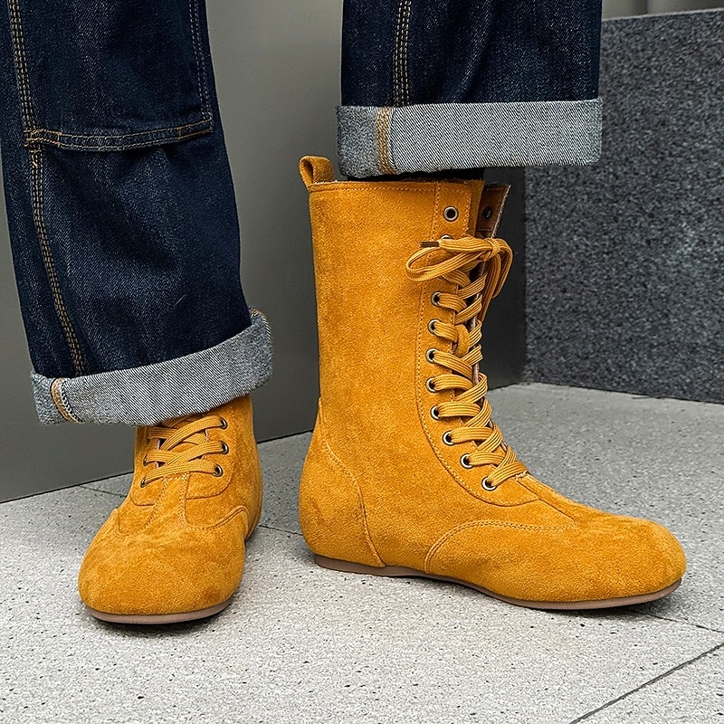 Men's Yellow Suede High-Top Boots – Urban Trendsetter, Comfortable Lace-Up Design for Casual or Everyday Wear 2