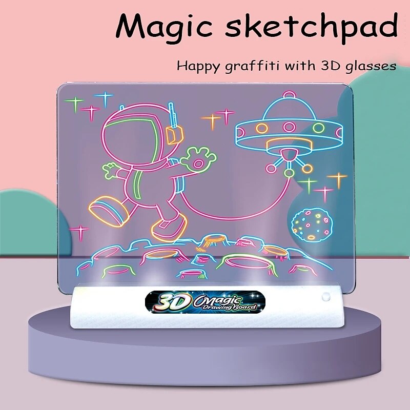 3D Fluorescent Drawing Board Magic Luminous Three-Dimensional Writing Board Graffiti Board Light Puzzle Children Drawing Board 3