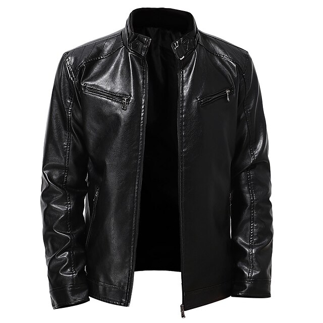 More information about Men's Faux Leather Jacket Transition Jacket Jacket Biker Jacket Going out Windproof Rivet Full Zip Spring Fall Solid Color Casual Stand Collar Regular Regular Fit Black Wine Brown Jacket