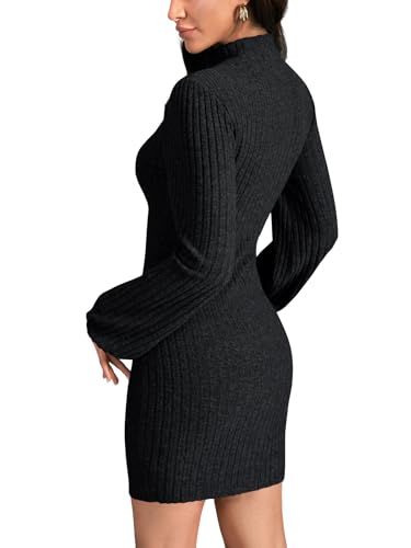 HOT ! LYANER Women's Mock Neck Lantern Long Sleeve Ribbed Knit Pullover Bodycon Sweater Short Dress
