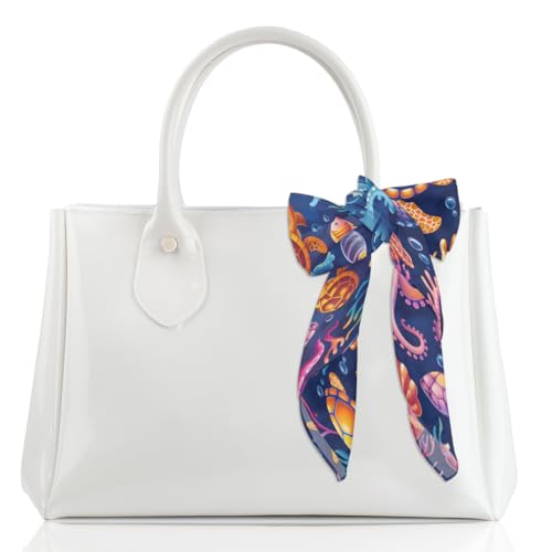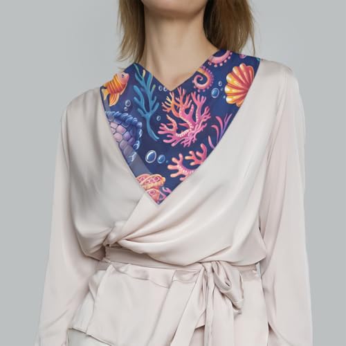 Ocean Turtle Octopus Pattern Silk Feeling Scarf for Women 23.6 Inch Bandana Lightweight Breathable Square Neck Satin Scarfs Fashion Silk Like Head Scarf Neckerchief for Bag Hair Scarves Decor Gift 7