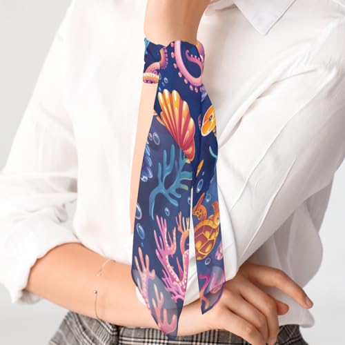 Ocean Turtle Octopus Pattern Silk Feeling Scarf for Women 23.6 Inch Bandana Lightweight Breathable Square Neck Satin Scarfs Fashion Silk Like Head Scarf Neckerchief for Bag Hair Scarves Decor Gift 6