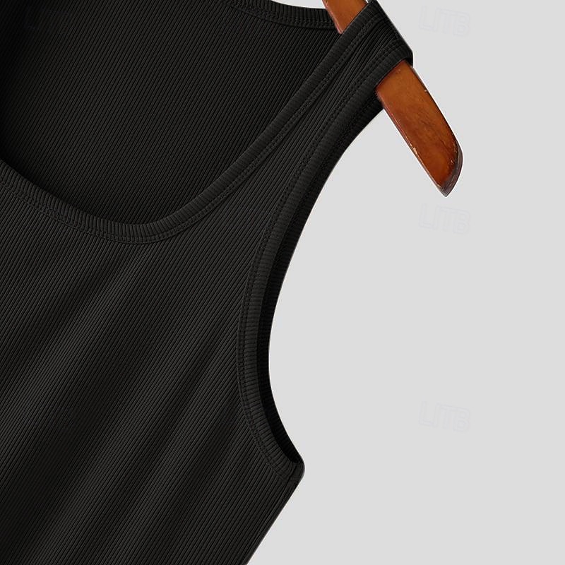 More information about Men's Tank Top Vest Top Undershirt Sleeveless Shirt Sleeveless Square Neck Summer Plain Fashion Designer Basic Vacation Street Going out Black White Top Tee for Men