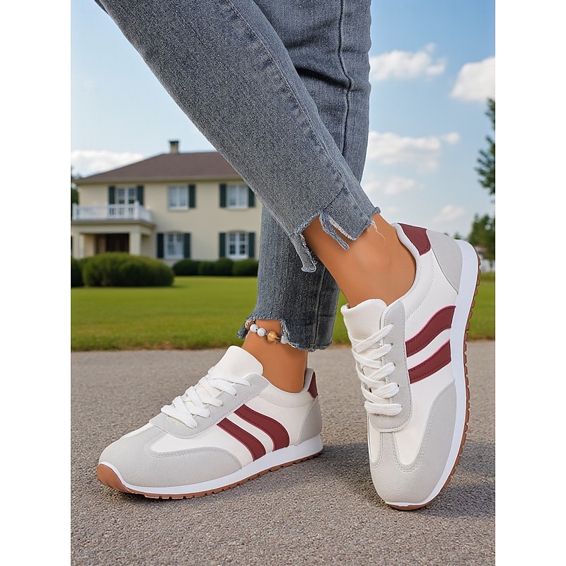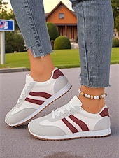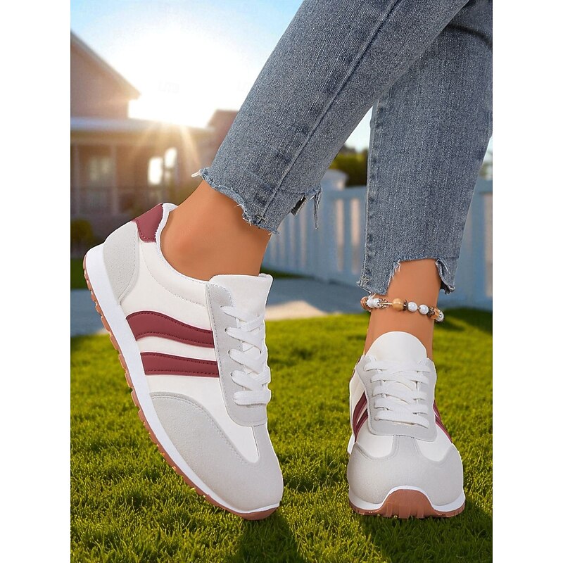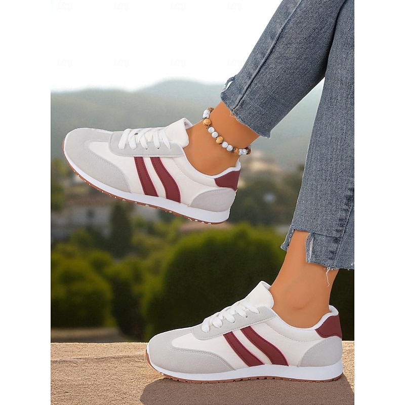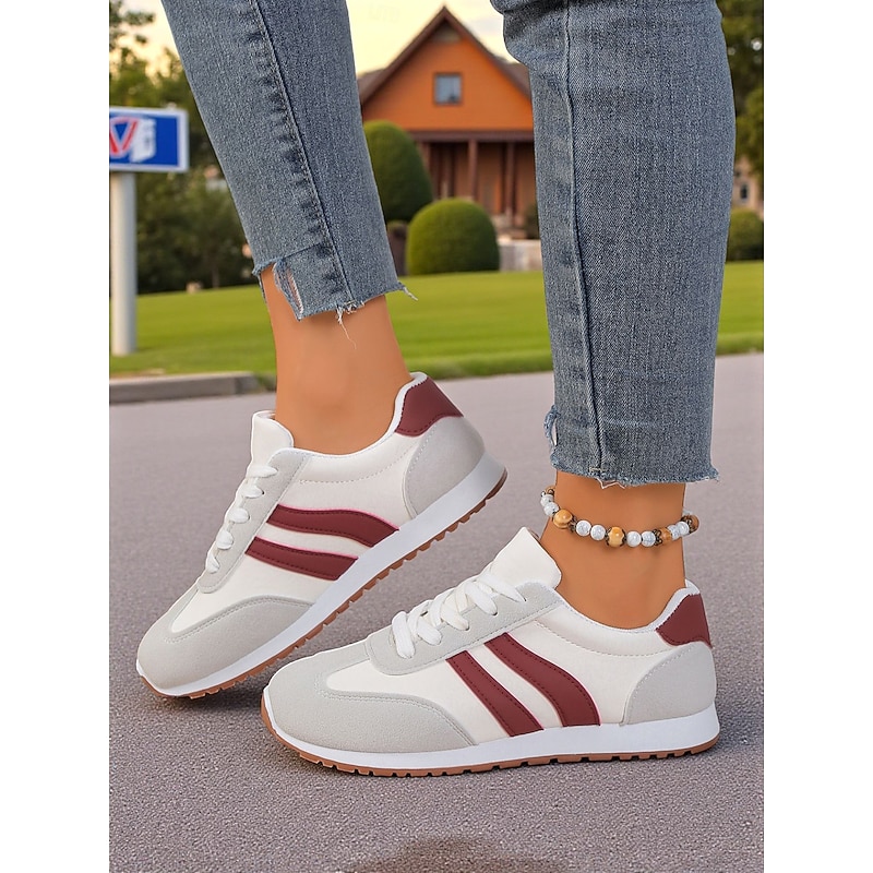 HOT ! Women's Burgundy Casual Sneakers with Faux Suede Panels, Lace-Up Walking Shoes for Everyday Wear