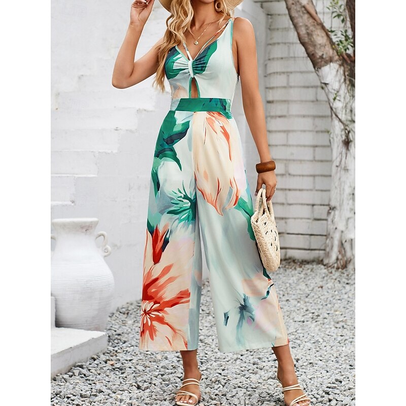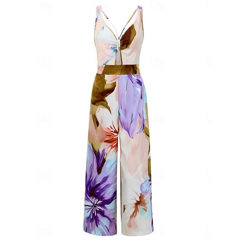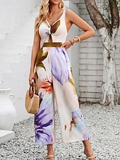 HOT ! Women's Normal Jumpsuit Active Floral Sleeveless V Neck High Waist Vacation Daily Regular Fit Purple Orange Summer