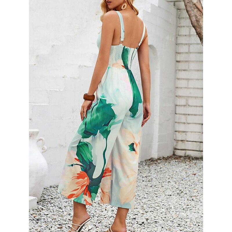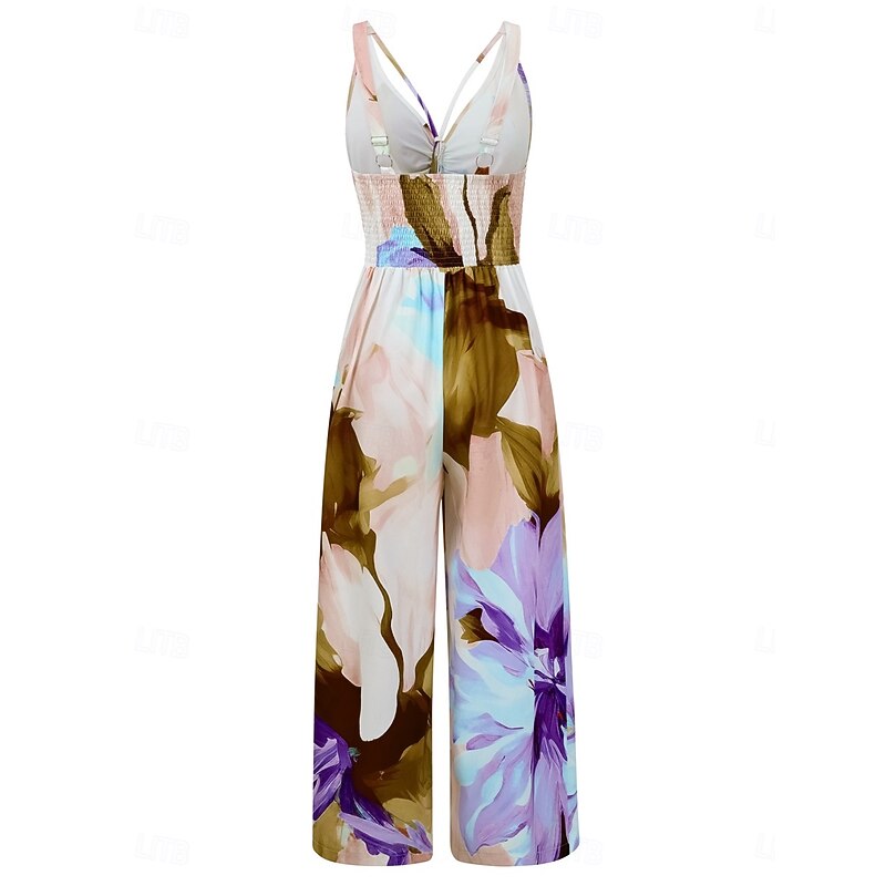 Women's Normal Jumpsuit Active Floral Sleeveless V Neck High Waist Vacation Daily Regular Fit Purple Orange Summer 17