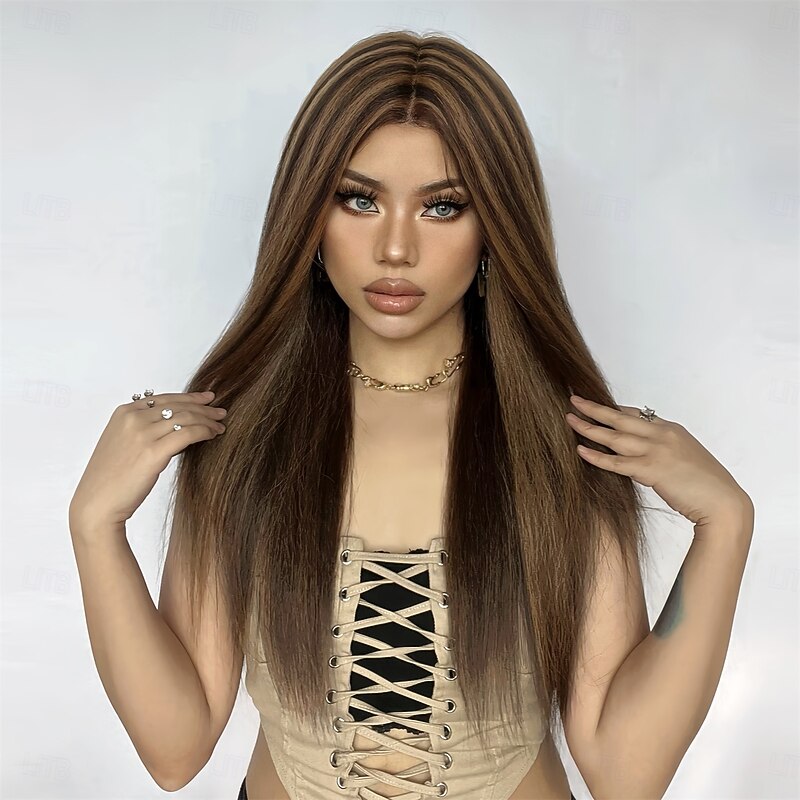 $62.99 - Synthetic Lace Wig Straight Style 24 inch Brown with Golden Highlights Middle Part 13x5x1 Lace Front Wig Women's Wig Golden Brown With Blonde 2025. Shop for cheap Synthetic Lace Wigs online? Buy at lightinthebox.com on sale today!