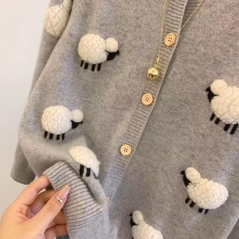 HOT ! Sheep Sweater Cardigan for Women-Funny Fall Winter Animal Christmas Long Sleeve Button Knit Cardigans Sweaters