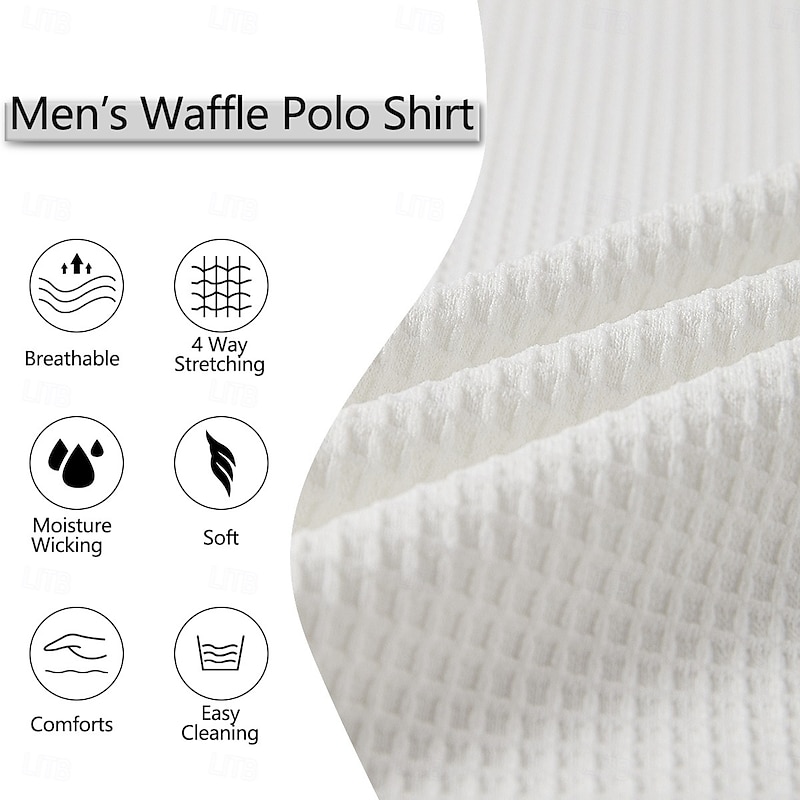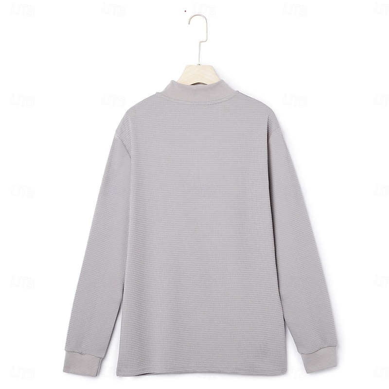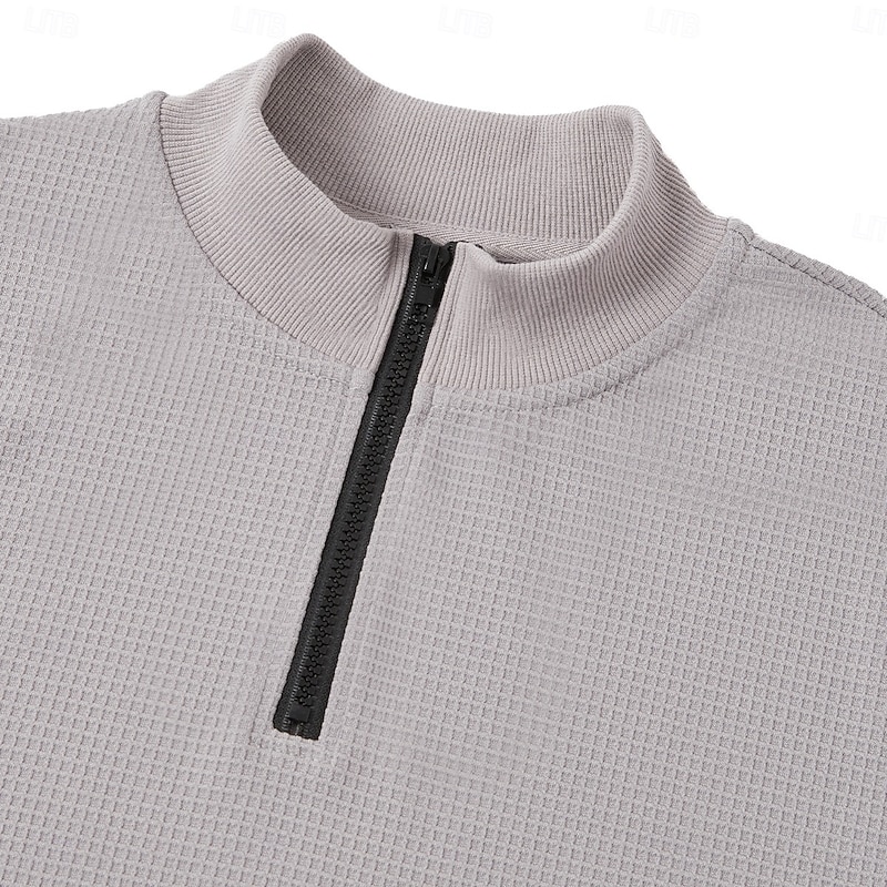 More information about Men's Waffle Polo Shirts Sports Outdoor Casual Standing Collar Quarter Zip Long Sleeve Fashion Modern Solid Color Textured Knitted Spring & Fall All Seasons Black White Blue Grey Waffle Polo Shirts
