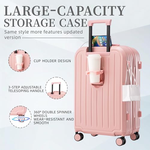 20"/24"/28" Pink Luggage Sets 3 Piece with Spinner Wheel, ABS Simple Luggage for Women, Hardside Suitcases with Cup Holder and USB Port for Outdoor Travel, Back to School (Pink) 6