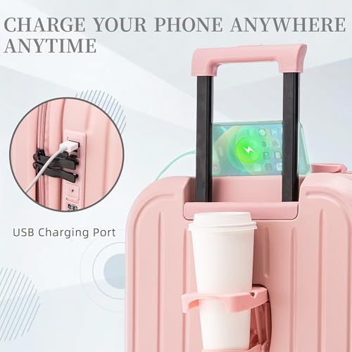 20"/24"/28" Pink Luggage Sets 3 Piece with Spinner Wheel, ABS Simple Luggage for Women, Hardside Suitcases with Cup Holder and USB Port for Outdoor Travel, Back to School (Pink) 7