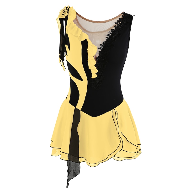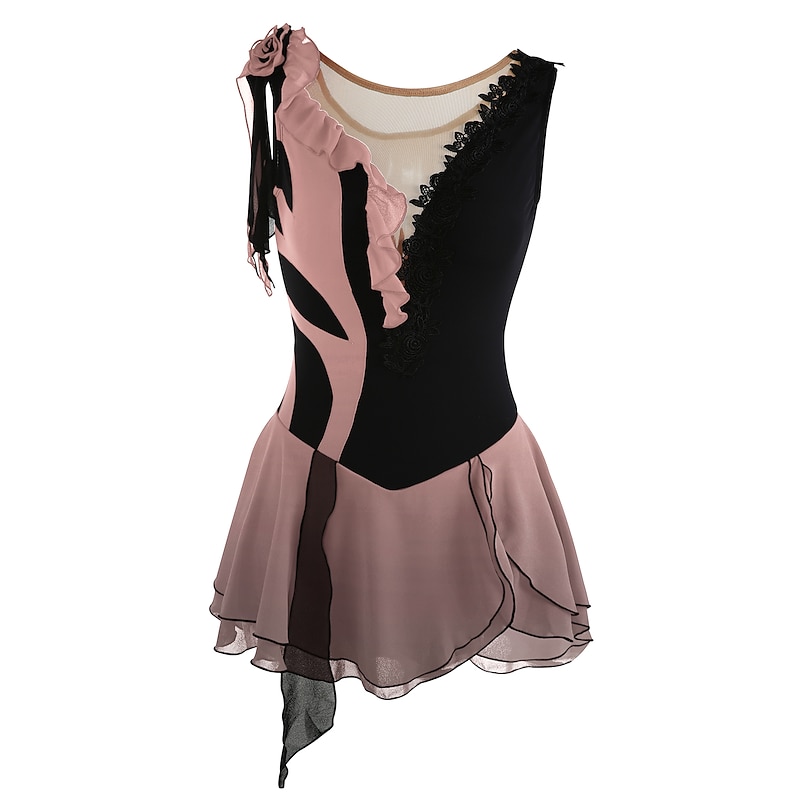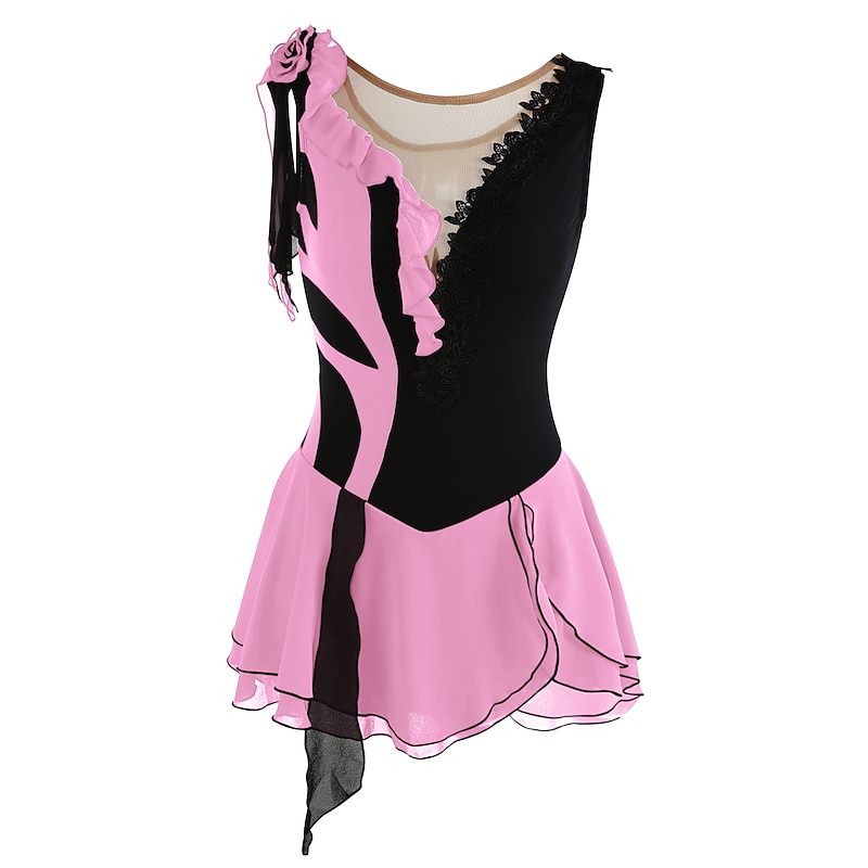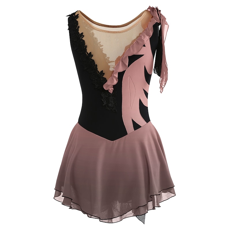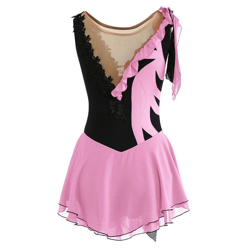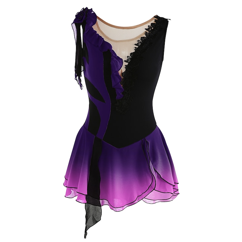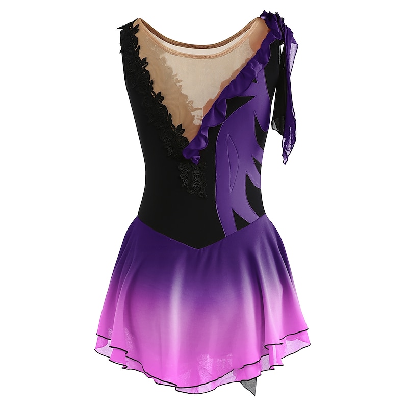 More information about Figure Skating Dress Women's Girls' Ice Skating Dress Outfits Yan pink Violet As Picture Patchwork Asymmetric Hem Mesh Spandex High Elasticity Practice Professional Competition Skating Wear Fashion