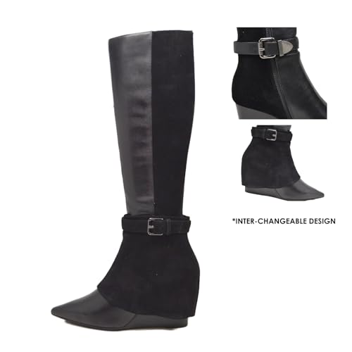 Paris Slim Calf Leather Lamb Suede 3-in-1 Wedge Dress Boot for Women 6