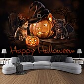 HOT ! Halloween Decorations Tapestry Jack O Lantern Pumpkin Decor Wall Art Large Hanging Tapestry Mural Photograph Backdrop Blanket Curtain Home Bedroom Living Room Bats Haunted House Graveyard