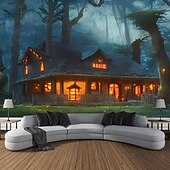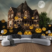More information about Halloween Decorations Tapestry Jack O Lantern Pumpkin Decor Wall Art Large Hanging Tapestry Mural Photograph Backdrop Blanket Curtain Home Bedroom Living Room Bats Haunted House Graveyard