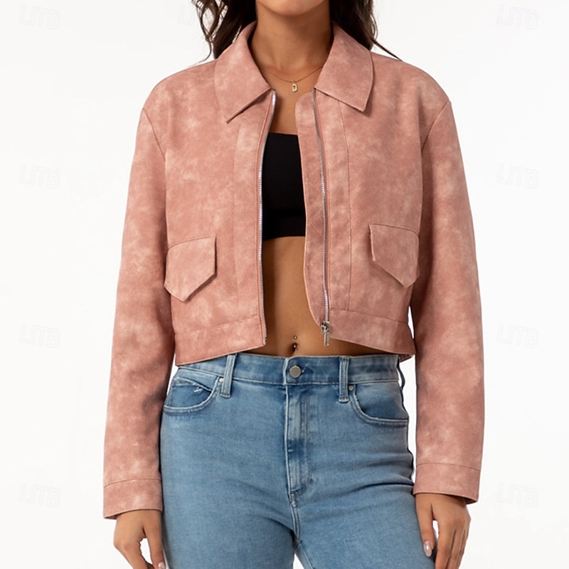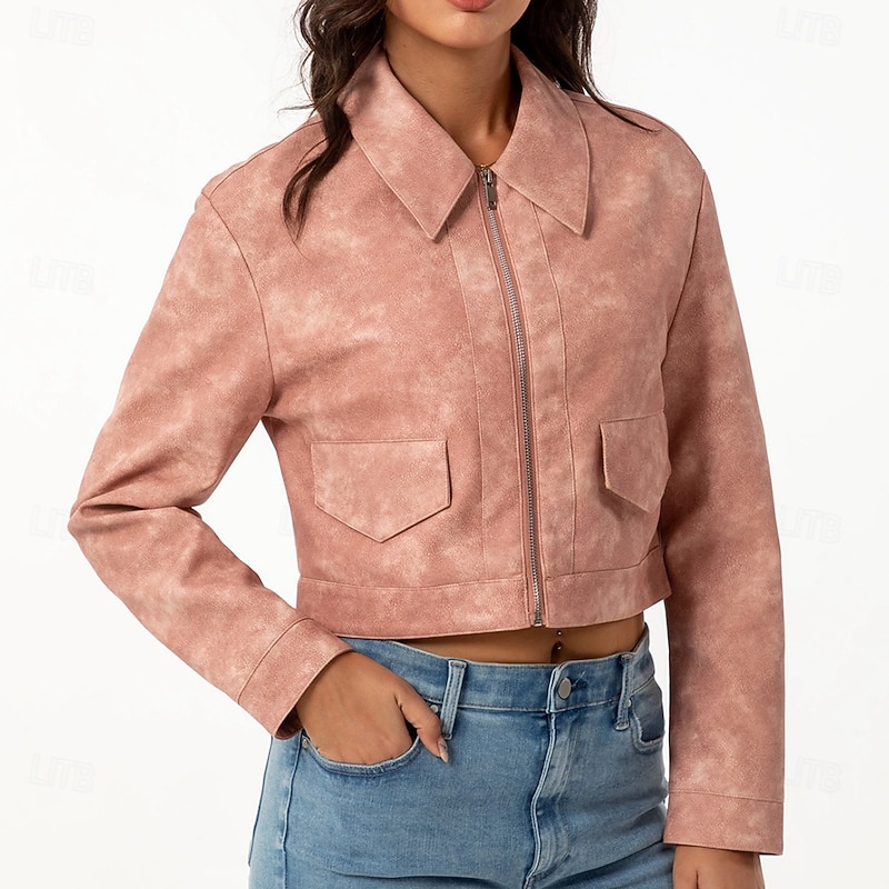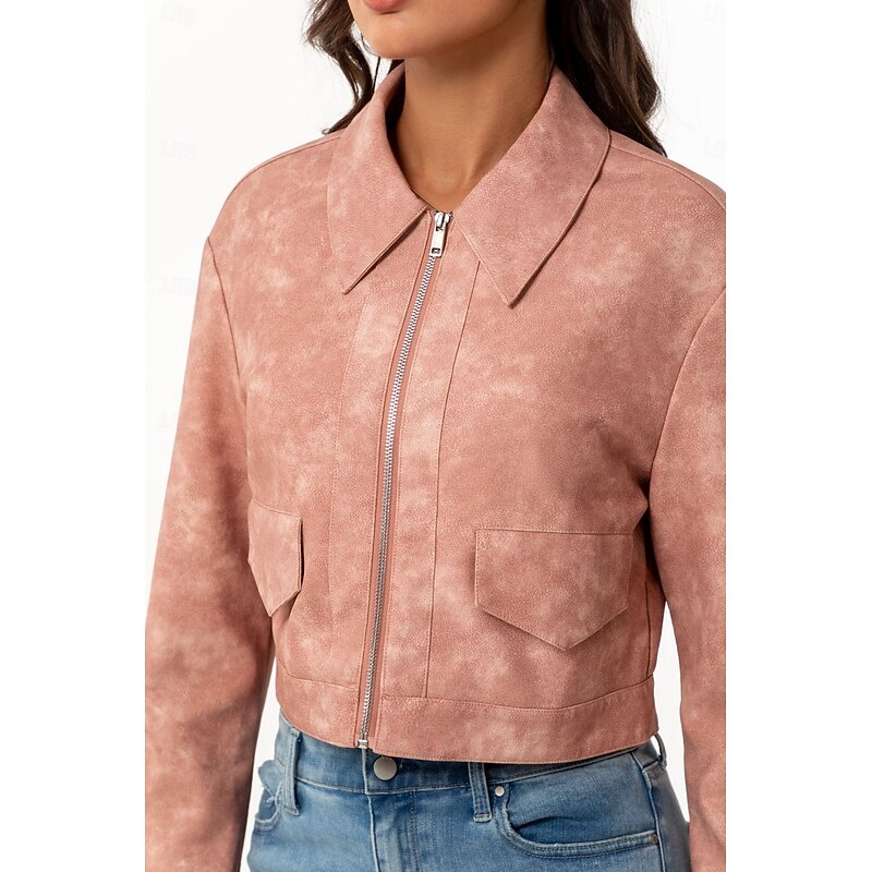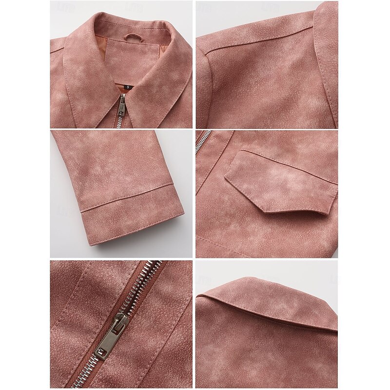 More information about Women's Faux Leather Jacket Comfortable Full Zip Fashion Street Style Plain Outdoor Casual Daily Short Turndown Regular Fit Long Sleeve Outerwear Black Pink Camel Spring Fall