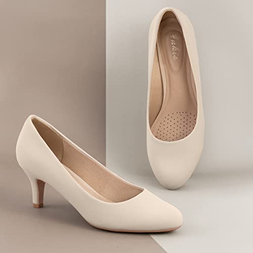 Ankis Nude Pumps for Women, Comfortable Low Heel Women Pumps Closed Round Toe Dress Shoes for Work Office Wedding Party Prom, 2.5 Inch 5