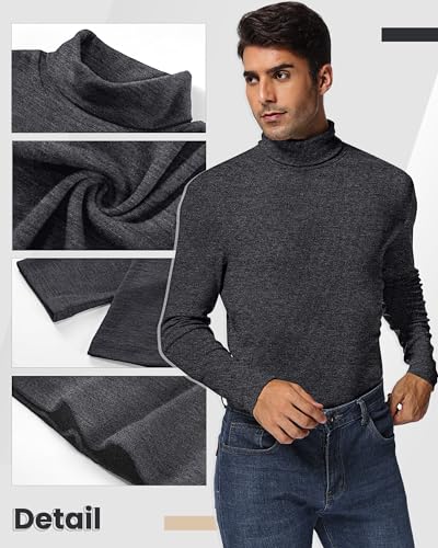 Ficerd 2 Pack Men's Turtle Neck Shirts, Lightweight Cotton Pullover Sweater Slim Fit Mock Turtleneck Knitted Long Sleeve Tops 3