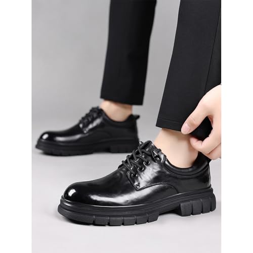 • Material: This men's thick-soled lace-up Oxford shoe is made of genuine leather with a shiny finish, and the soft leather lining is breathable. It is soft overall and easy to clean and care for.
