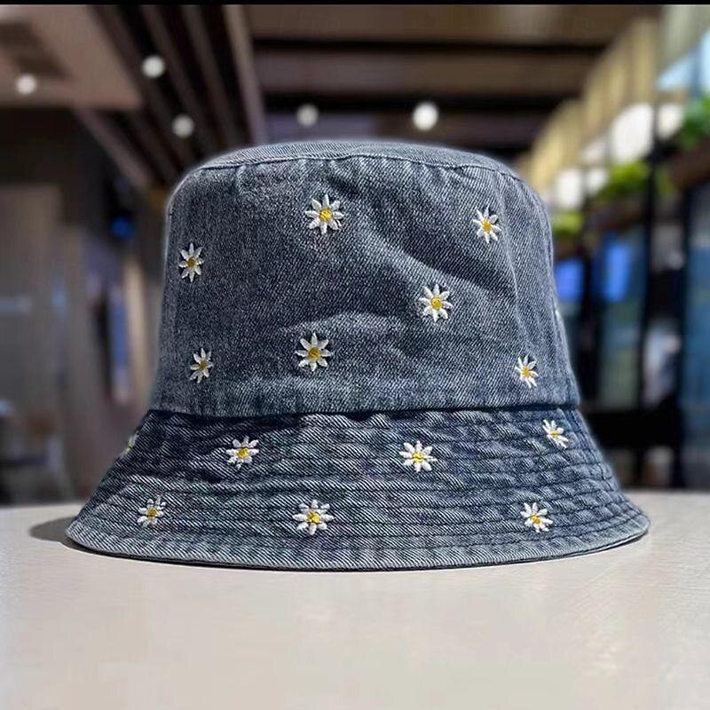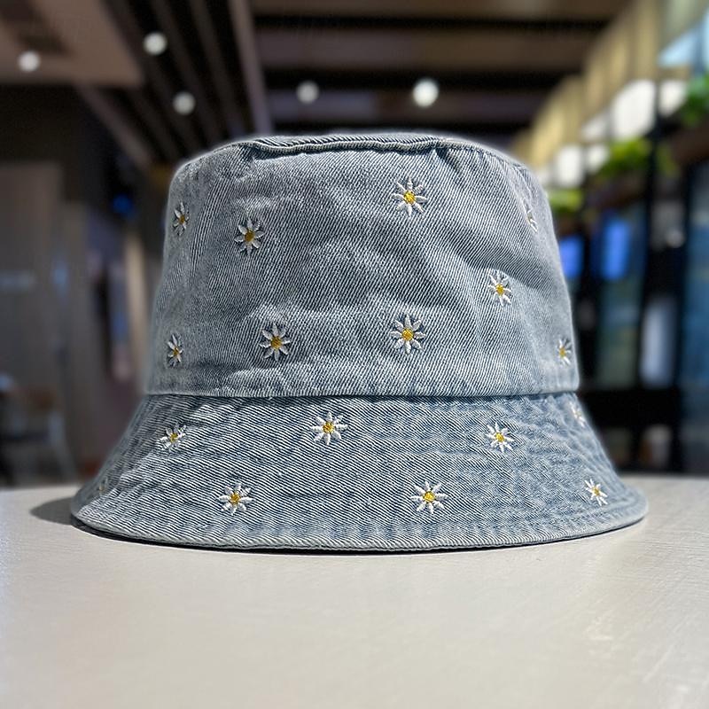 Highlights [Fabric]: Crafted from high-quality denim, these women's bucket hats offer durability and a soft, comfortable fit. The material ensures a relaxed feel, suitable for daily wear and outdoor adventures. [Fit]: Designed with a classic bucket hat shape, these hats provide a casual yet stylish silhouette. The flexible denim fabric adapts to head shapes while maintaining its structure for a comfortable fit. [Design Highlights]: Each hat features beautifully embroidered daisy patterns, adding a whimsical charm to the overall design. The embroidery stands out against the denim background, creating a playful and fashionable accessory ideal for any casual ensemble. [Occasions]: Perfect for spring and summer outings, these hats serve as a functional and stylish choice for daily activities, outdoor adventures, and weekend leisure. The hats offer effective sun protection while enhancing your casual look effortlessly. [Size]: Available in size M, these bucket hats cater to a versatile range of wearers. The flexible fit ensures comfort for different head sizes, making it a delightful addition to any wardrobe.