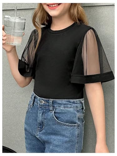 SHENHE Girl's Mesh Flutter Short Sleeve Top Crew Neck Summer Dressy Going Out Tee Shirt 5