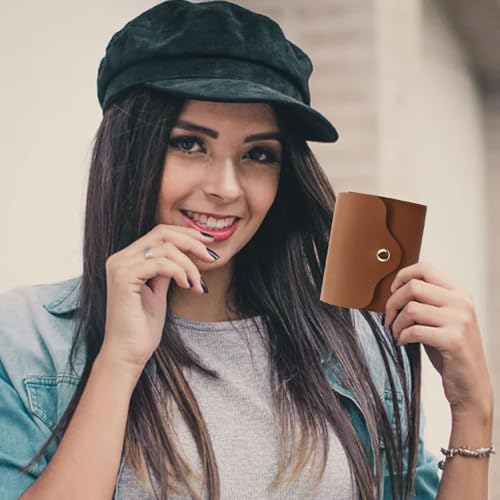 Mini Women Coin Purse, Slim Soft PU Leather Wallet Bi-Fold Ladies Wallet with Snap Closure Solid Colour Coin Wallet for Storing Coin Cash Cards (Brown) 6