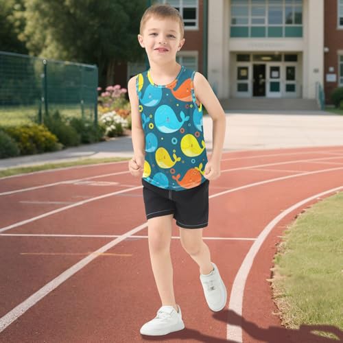 J JOYSAY Cartoon Whale Circle Teal Boys Tank Top Sleeveless Muscle Shirts Quick Dry Kids T-Shirts 3-15T 3